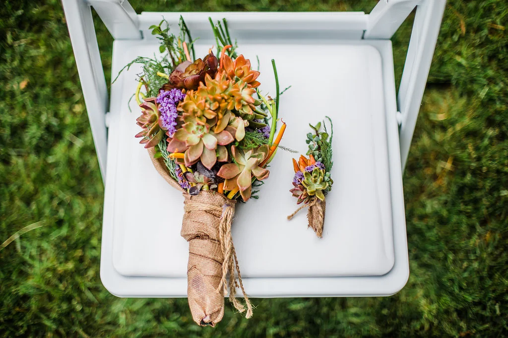 Written by Photographer, Ella of Ella Farrell Weddings: “The couple wanted to get married someplace special, and in a way that would be meaningful to them. Sheena's only wishes were to get married outdoors, where there aren't many people, and where her fur babies could attend, and that her brother could officiate. The couple decided that Brad’s family home would be perfect. I immediately fell in love with Sheen and Bradley! She is a free spirit with rainbow hair and wore a white tux while Bradley is a lawyer working downtown, dressed to the nine's in his black tux. There is nothing conventional about them and I LOVE it!