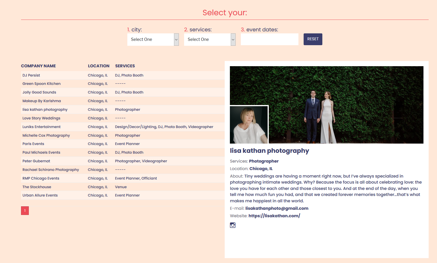 Back in March, with an immediate need to try and help couples who were having to reschedule their weddings due to COVID-19, Jeffrey started a simple database on CHI thee WED to help them out. The database was soon filled with vendors, sharing the dates they were available for weddings, and gave couples a simple tool to help reschedule their wedding plans, without having to call or email multiple vendors.