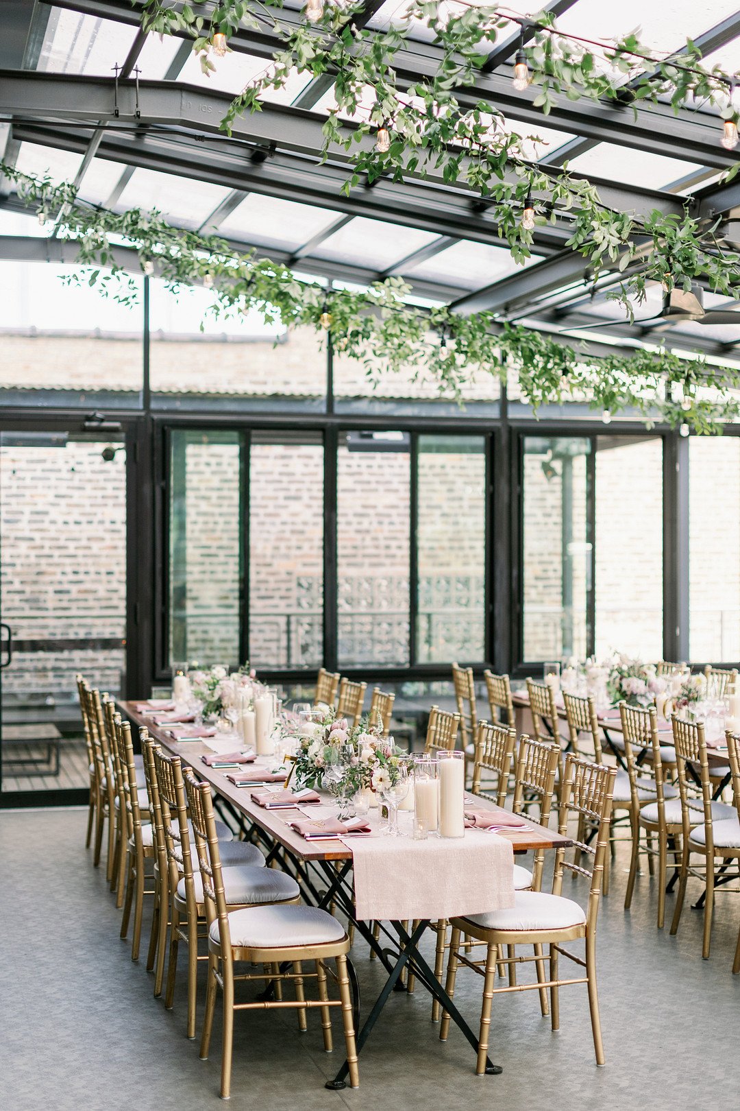 Kate and Joel share a love of Chick Fil A, traveling, cooking, and their sweet pup. They met on a dating app in Chicago and have been inseparable ever since. For their dream summer Chicago wedding, Kate's family flew in from Scotland to celebrate. With a romantic blush and ivory color palate, the rain didn't stop their rooftop wedding celebration. Although they couldn't open the retractable roof at Morgans' wedding guests danced the night away until Chick Fil A was delivered as a late night snack for guests! Kate and Joel put so much effort into the design of their wedding reception that they were in shock when we did a first room reveal with them. It was truly a celebration of friends, family and love!