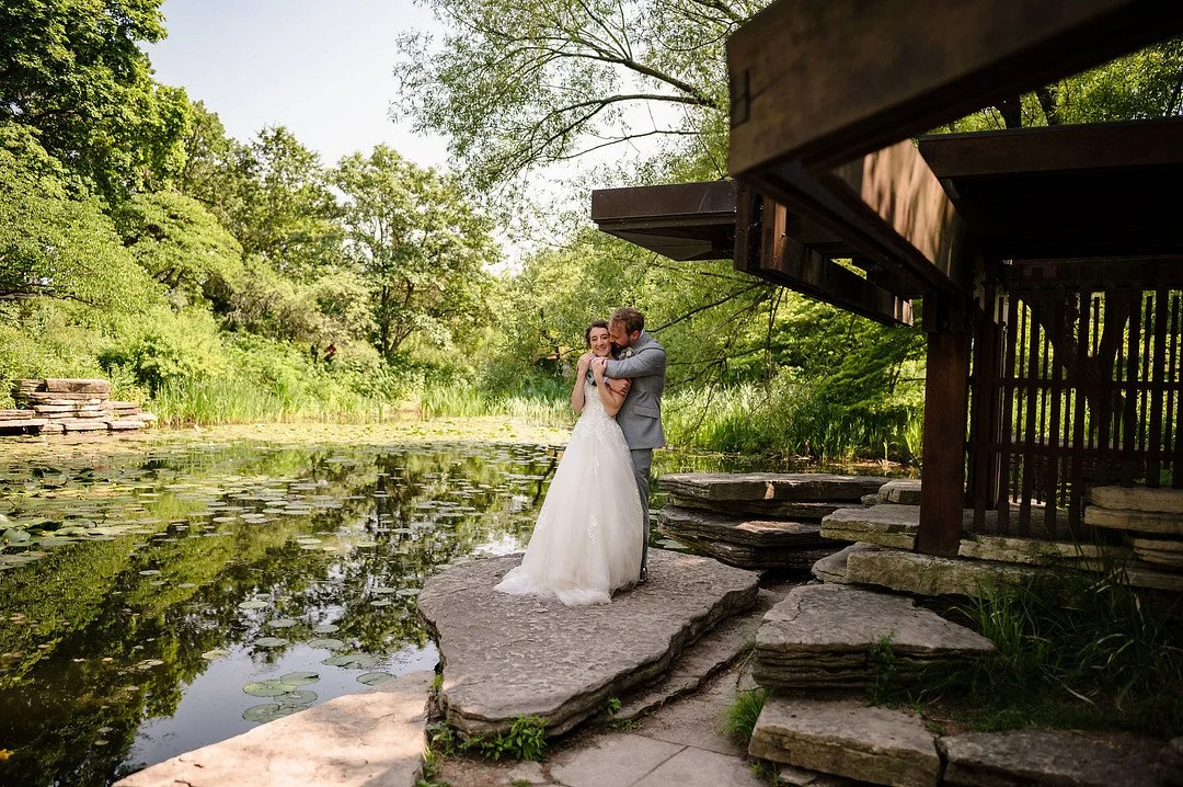 Post-ceremony, the wedding party hopped on a trolley to explore some of Chicago’s famous spots. First stop: Lincoln Park South Pond and the Alfred Caldwell Lily Pool. These lush settings provided a serene backdrop for candid shots and gorgeous portraits of the newlyweds.